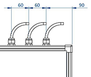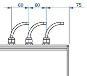 | Many | M12 Standard or M12 Power | First 90mm connector Space between 2 cable glands: 60mm | First 75mm connector Space between 2 cable glands: 60mm | |||||||||
