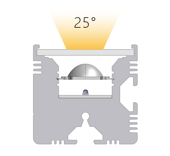 EFFI-FLEX-CPT accepts 4 lens configurations to adjust the emission angle to your need.