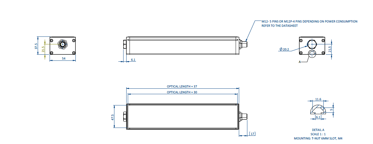 NB : For the 2M12P configuration, the second connector (black nut) only needs its 24V and GND to be connected. Connect the GND with the main connector GND.