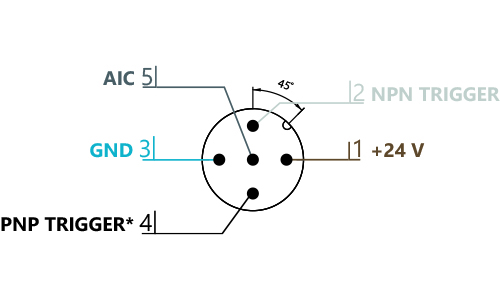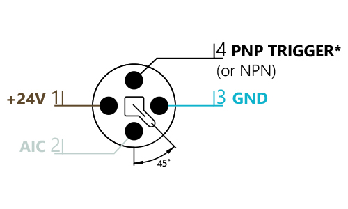 NB : For the 2M12P configuration, the second connector (black nut) only needs its 24V and GND to be connected. Connect the GND with the main connector GND.
