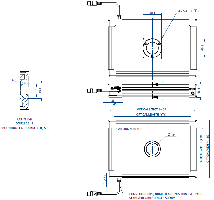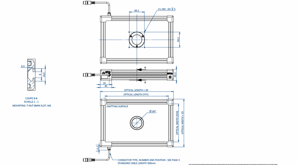 The EFFI-FD is equipped with a T-NUT M6 groove along its 4 sides. Effilux offers compatible fixing accessories.
