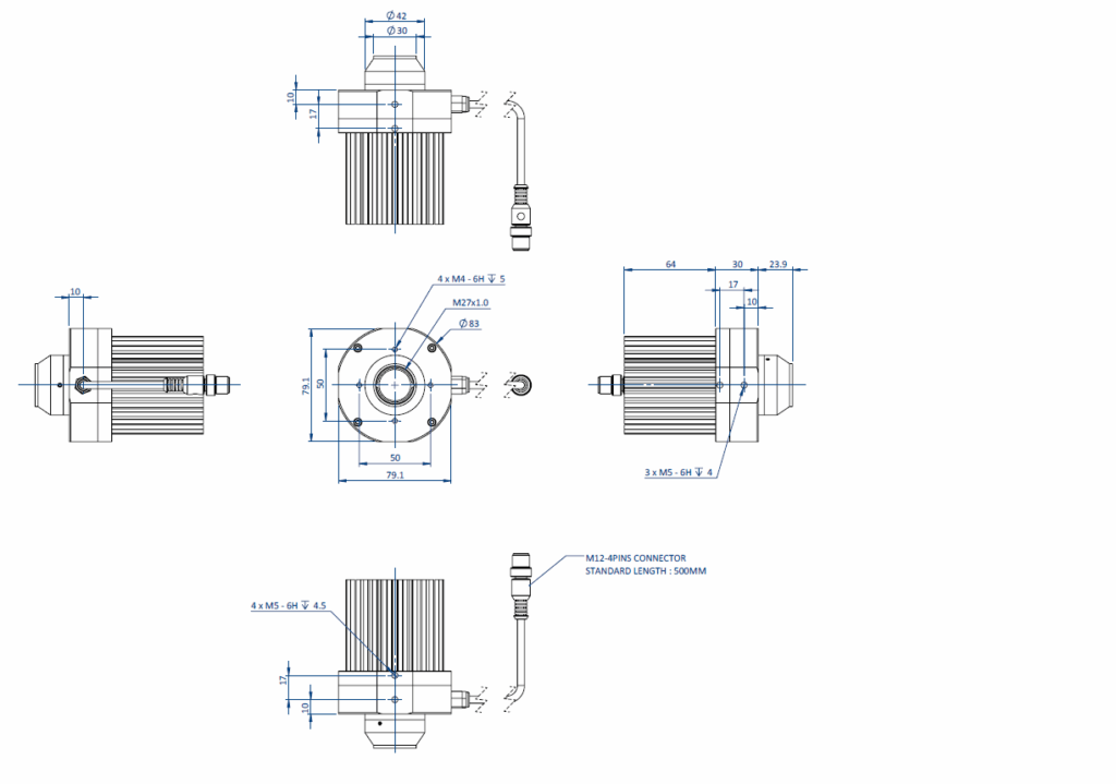 EFFI-SHARP-CPT: Five M4x0.8 holes can be used to fix the device.