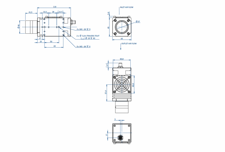 Adapter used to simplify the integration of the projector (orientation). Supplied with an EFFV-BOLT-0011 T-Nut and two M6x14 screws.